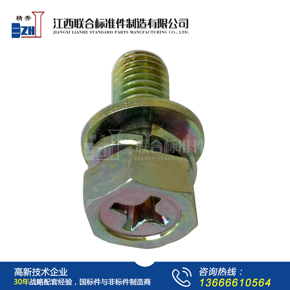 GB9074.13十字槽凹穴六角頭螺栓、彈簧墊圈和平墊圈組合件
